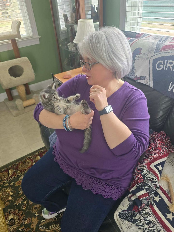 Brag: Last weekend I went to see Deena and we had a great time catching up—the last time we got together was before the pandemic, so it had been way too long. I got to meet her cats and snuggled Louie the kitten, which she and her friend recently rescued (and that I named). I stood and looked at the ocean, and gave it my grief and pain to carry out with the tide. All in all, a very healing 48 hours.