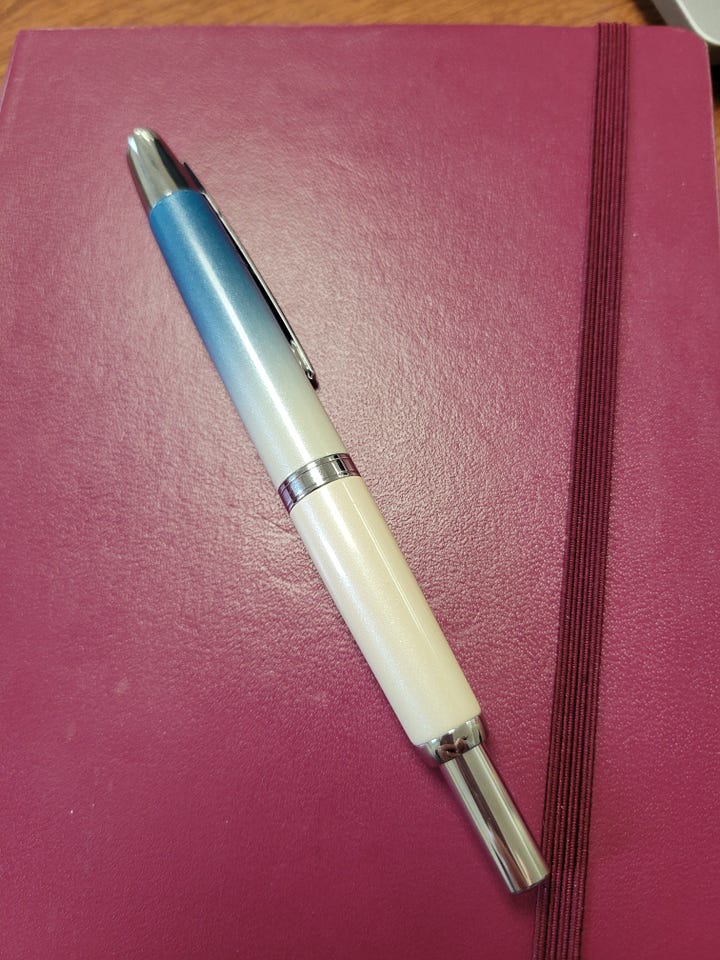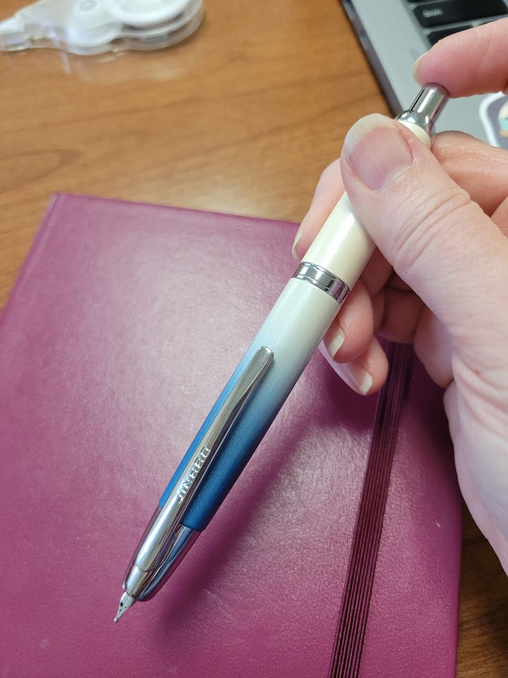 Brag: My pen pal recommended the retractable Jinhao 10 fountain pen, an inexpensive Chinese knockoff of a popular Japanese pen, so I ordered one off of Etsy to try out. The pen arrived yesterday and I love it!